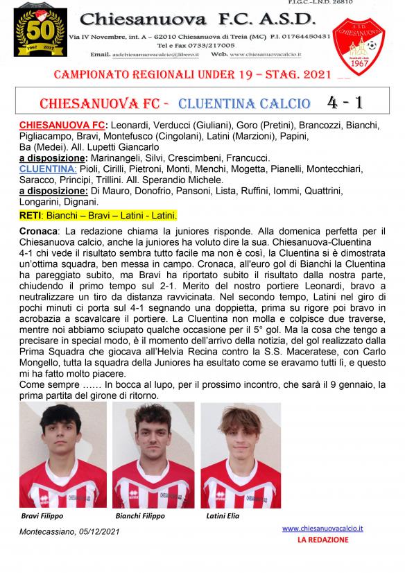 CU.68 Jun. Chiesanuova - Cluentina Calcio