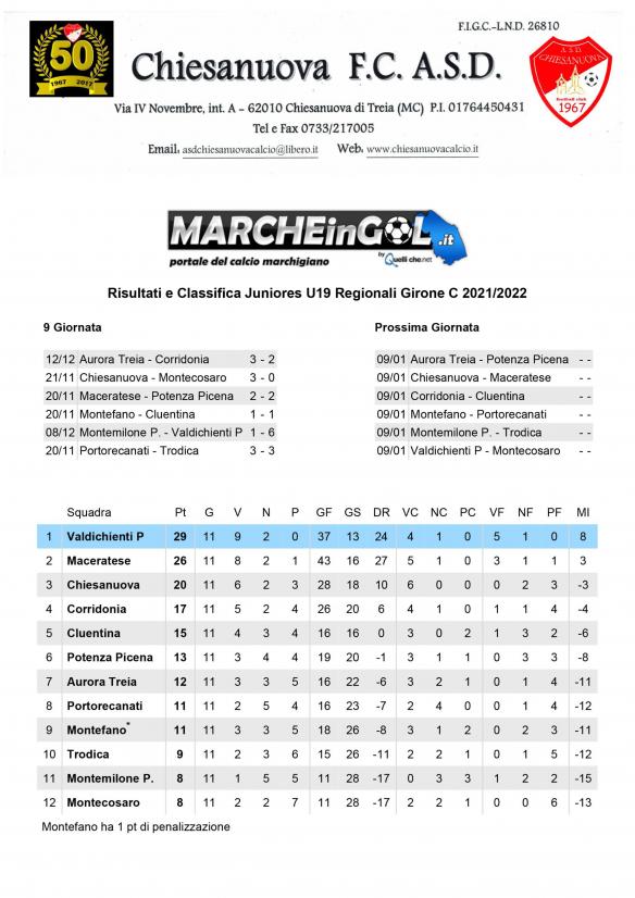 CU.71 Classifica Juniores Regionali Gir. C