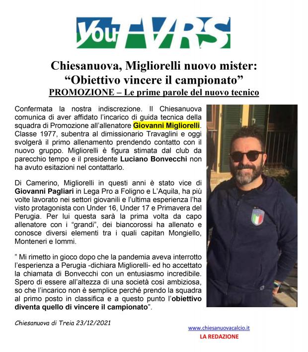 CU.79 Il punto sul nuovo tecnico Migliorelli Giovanni