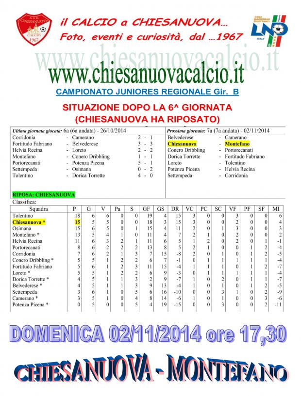 CU. 76 JUNIORES Il Punto dopo la 6^ di andata
