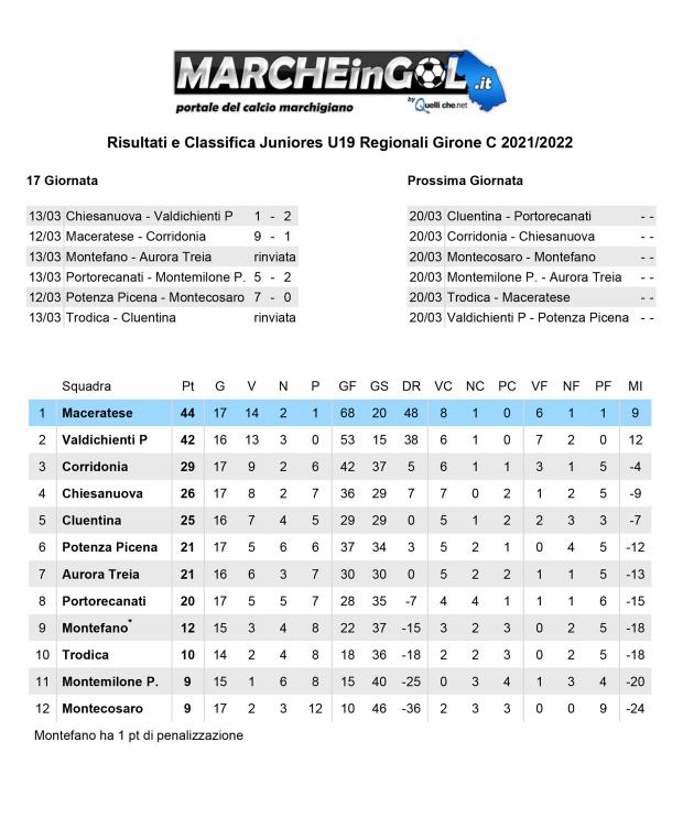 CU.113 Classifica Juniores Regionali Gir. C