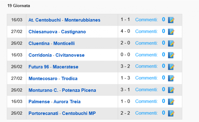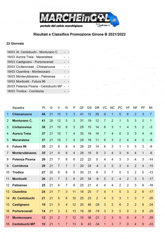 CU.115 Promozione - Nuova Classifica dopo recuperi di ieri