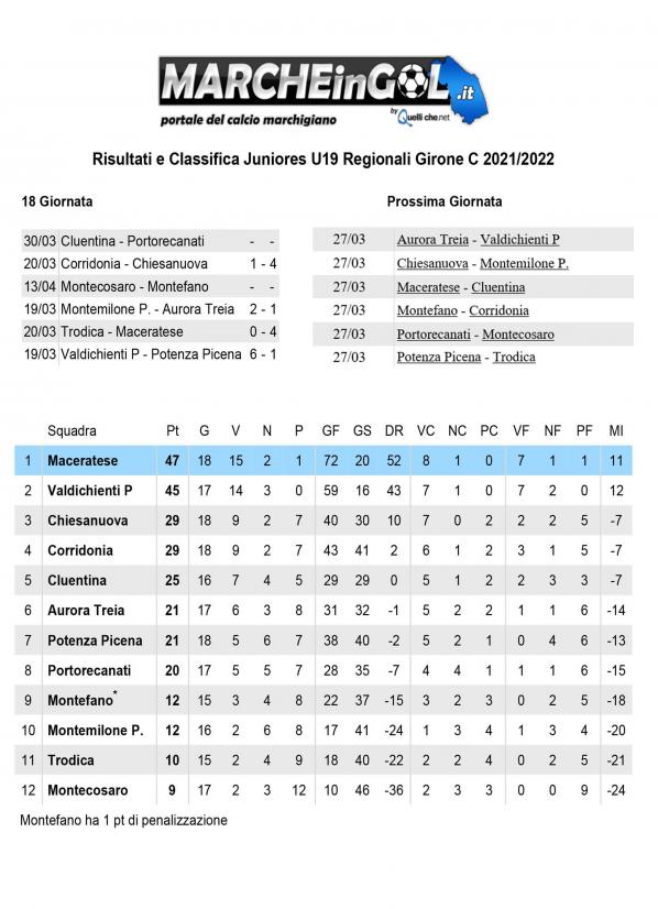 CU.118 Classifica Juniores Regionali Gir. C