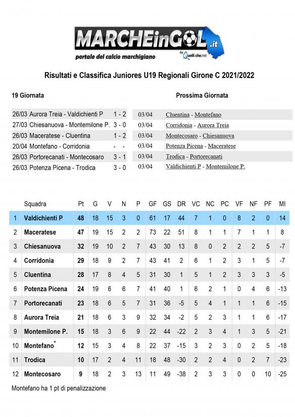 CU.123 Classifica Juniores Regionali Gir. C