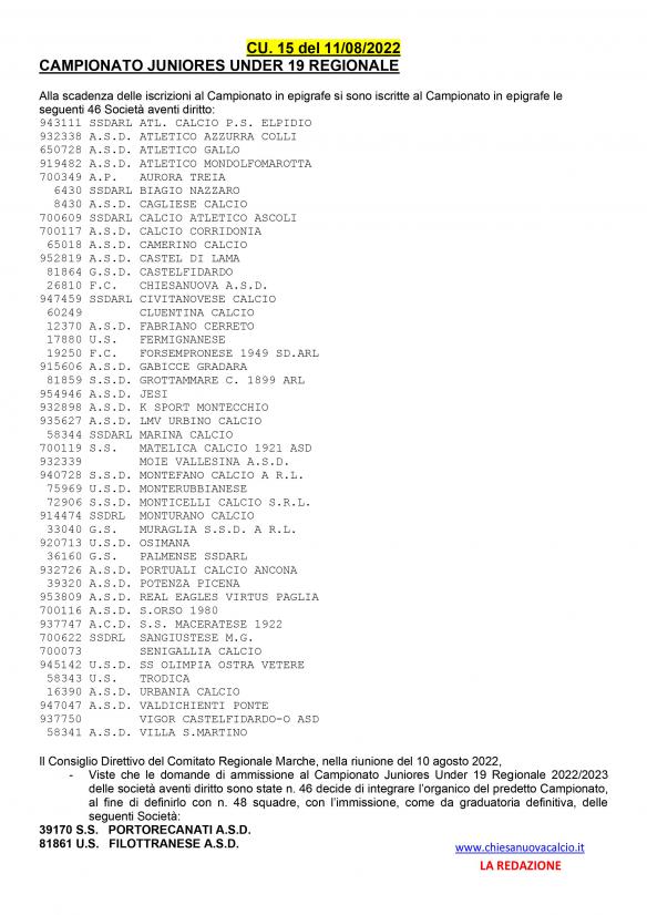 CU.24 N°. 46 Squadre per il Titolo Juniores Regiomale