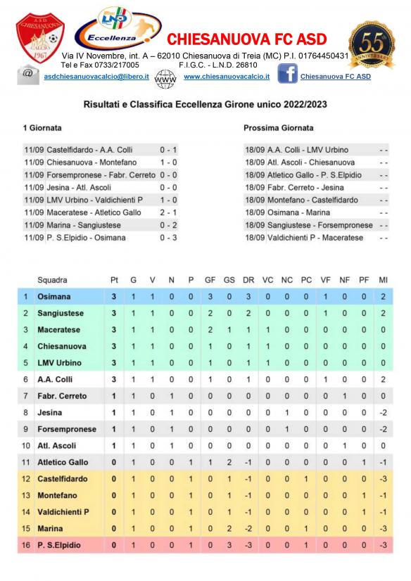 CU.234 Risultati e Classifica Eccellenza ..