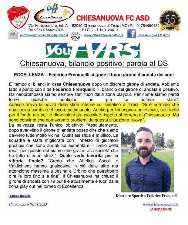 CU.139 Ecc. Il Punto dal nostro DS Federico Frenquelli