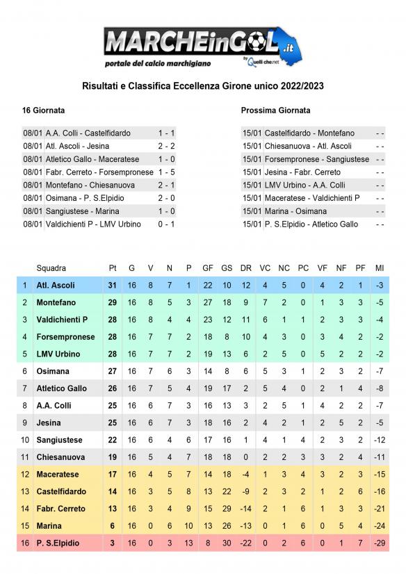 CU.234 Risultati e Classifica Eccellenza ..