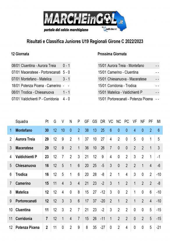 CU.148 Classifica Juniores Regionali