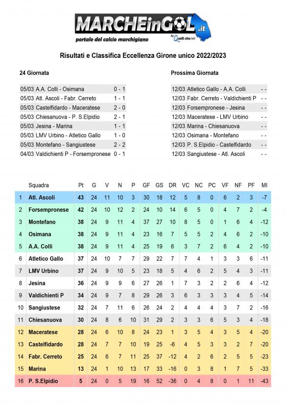 CU.234 Risultati e Classifica Eccellenza ..