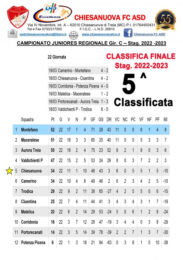 CU.209 Classifica Juniores Regionali gir. C - FINALE