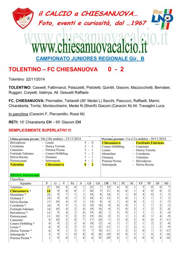 CU. 101 JUNIORES: Tolentino - FC. Chiesanuova