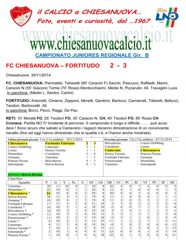 CU. 108 JUNIORES: Chiesanuova - Fortitudo Fabriano