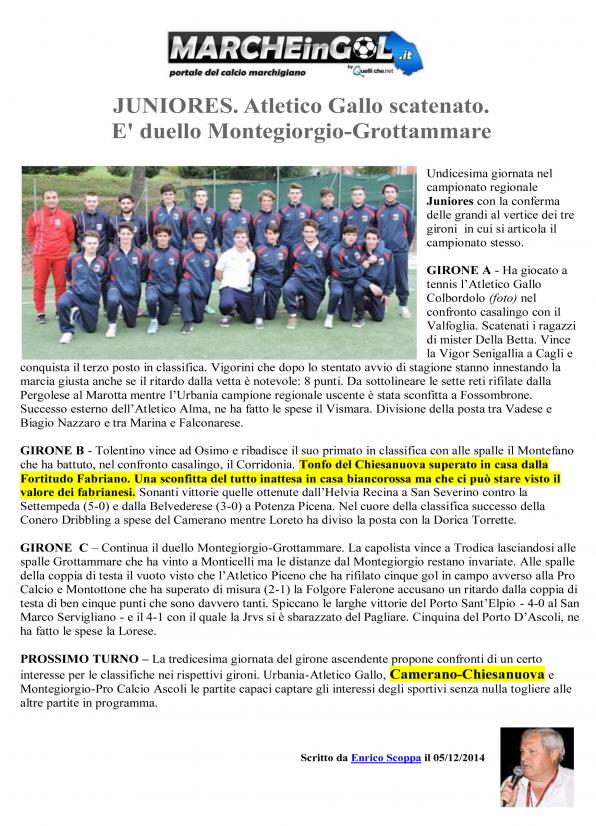 CU. 109 JUNIORES: Il Punto di Scoppa