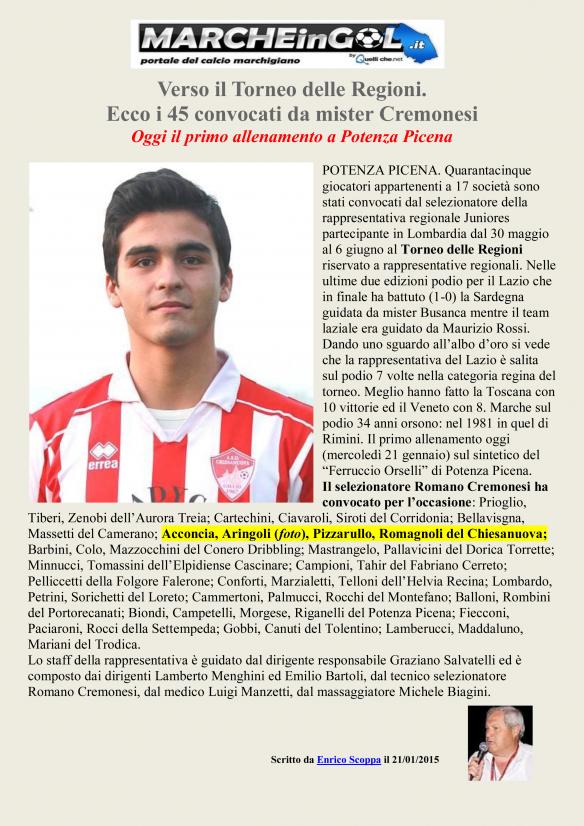 CU. 136 JUNIORES: CONVOCAZIONI TORNEO NAZIONALE