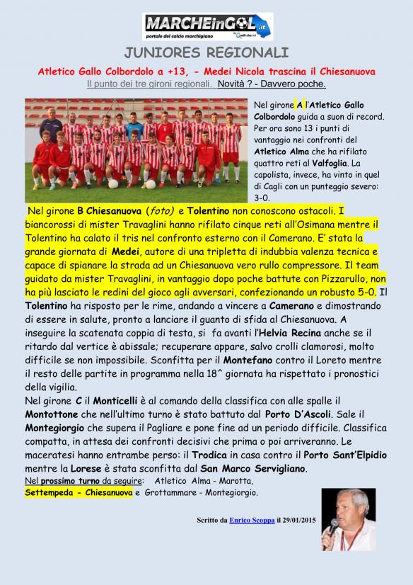 CU.226 JUNIORES Aggiornamento Risultati e Classifica ..
