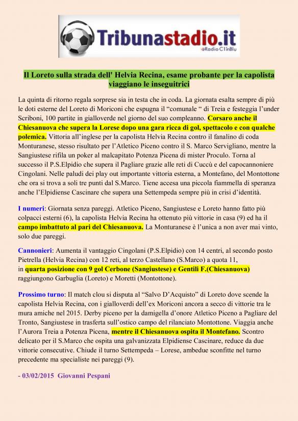 Martedi 3 febbraio 2015