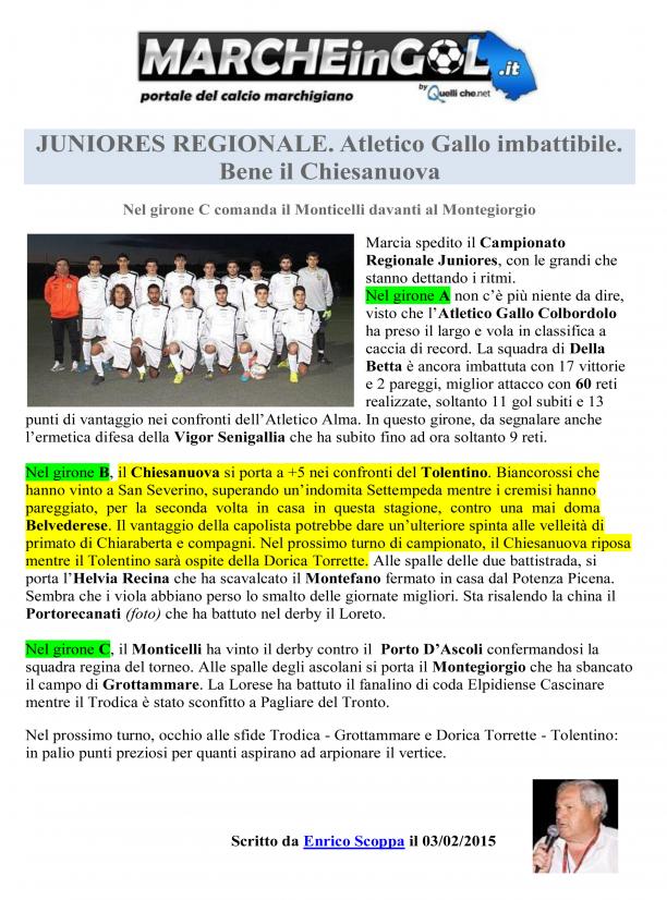 CU. 151 JUNIORES: Il Punto di Scoppa
