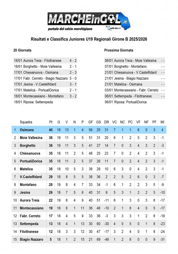 CU.226 JUNIORES Aggiornamento Risultati e Classifica ..