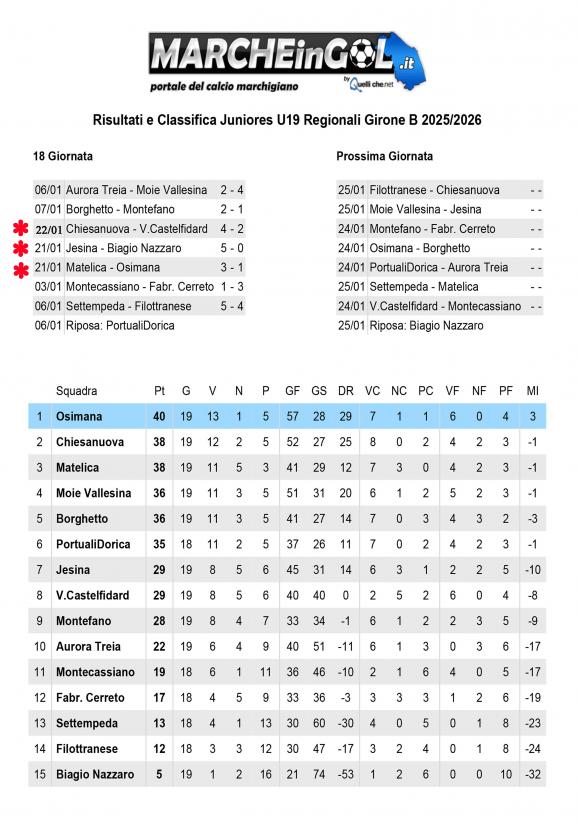 CU.226 JUNIORES Aggiornamento Risultati e Classifica ..