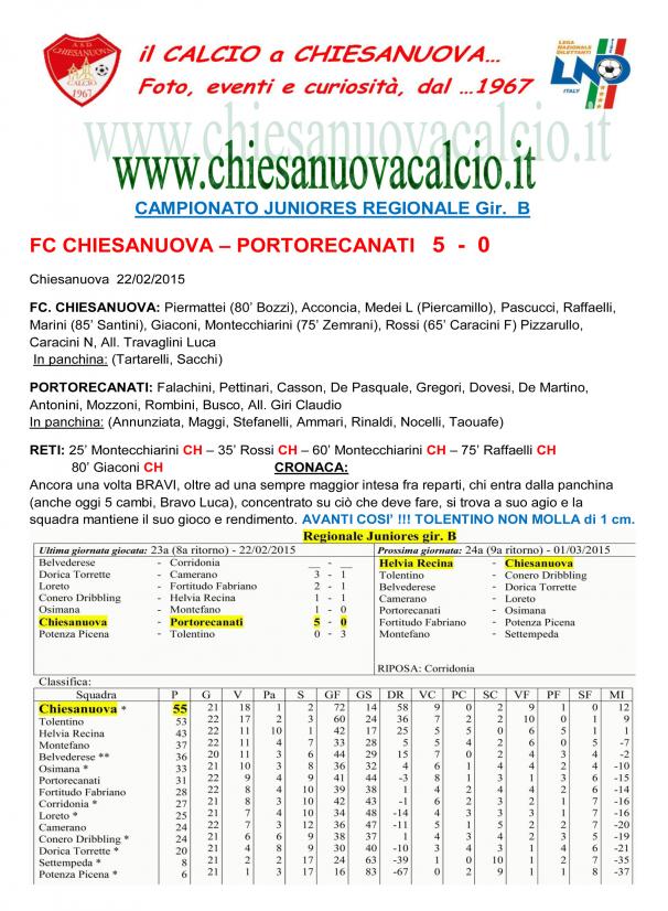 CU. 164 JUNIORES: Chiesanuova - Portorecanati