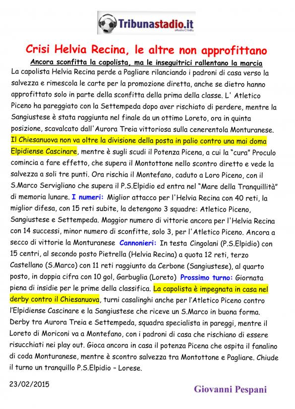 C.224 ECCELLENZA - Aggiornamento Risultati e Classifica ..