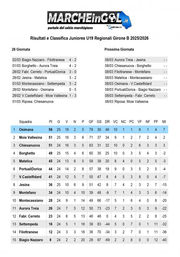 CU.226 JUNIORES Aggiornamento Risultati e Classifica ..