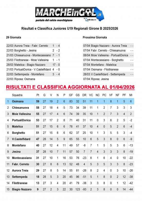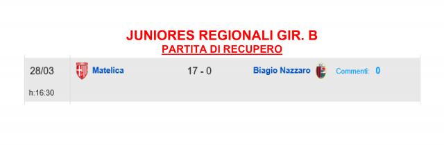 CU.226 JUNIORES Aggiornamento Risultati e Classifica