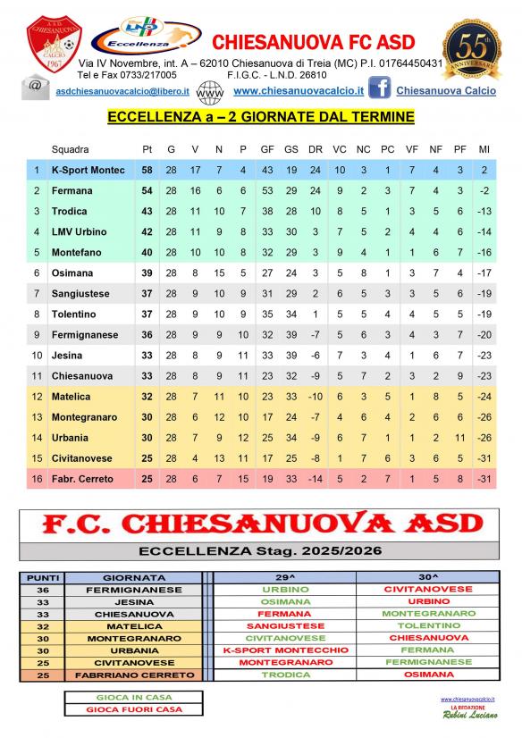 CU.236 ECCELLENZA SITUAZIONE ULTIME 2 GIORNATE
