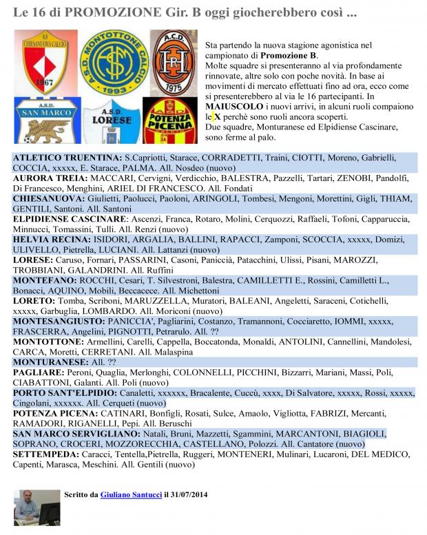 Le 16 di PROMOZIONE Gir. B oggi giocherebbero così ...