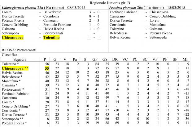 CU. 178 JUNIORES REG.LE: Domani 16,30 . . . Chiesanuova-Tolentino