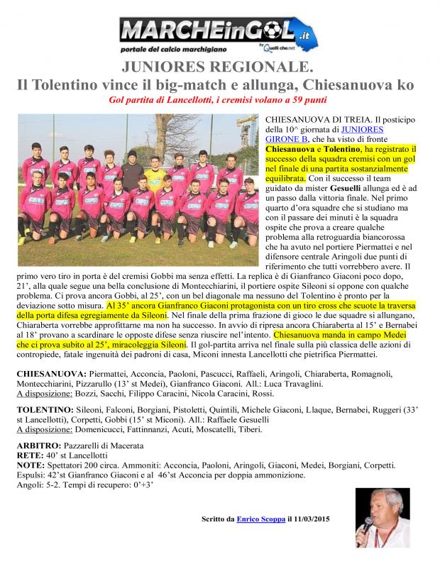 CU. 179 JUNIORES Chiesanuova - Tolentino ... cronaca di Scoppa