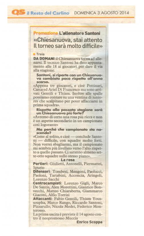 4 AGOSTO - INIZIO PREPARAZIONE STAG. 2014/15