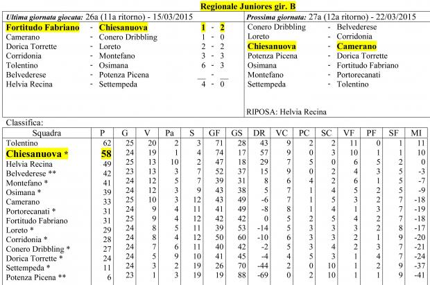 CU.226 JUNIORES Aggiornamento Risultati e Classifica ..