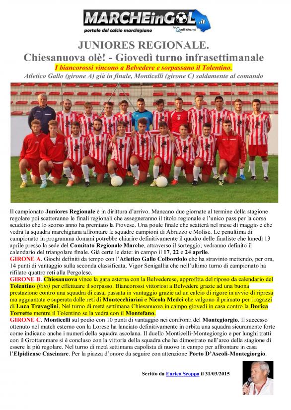 CU.226 JUNIORES Aggiornamento Risultati e Classifica ..