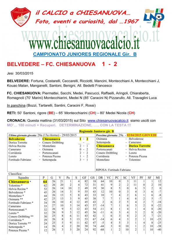 CU. 199 JUNIORES - Cronaca: Belvedere - Chiesanuova