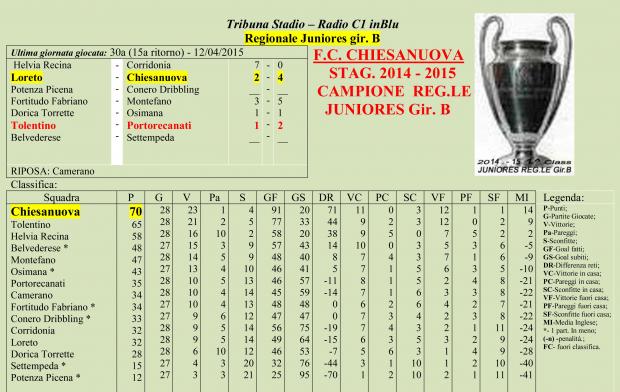 CU.226 JUNIORES Aggiornamento Risultati e Classifica ..