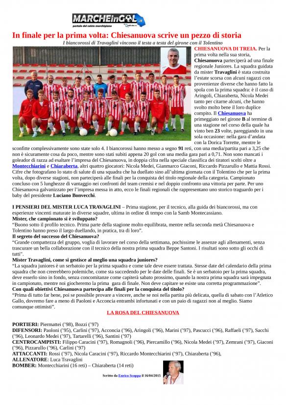 CU. 210 JUNIORES REG.LE - CHIESANUOVA NELLA STORIA
