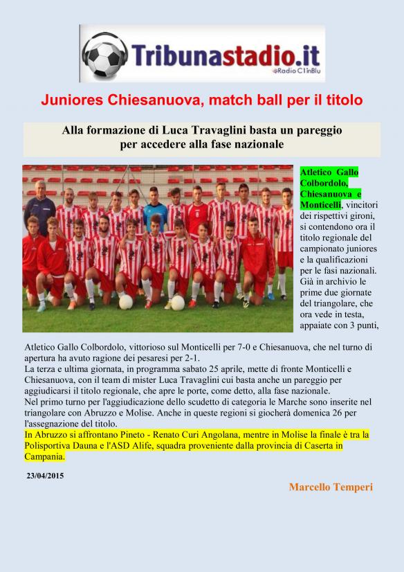 17.10.15 JUNIORES Intervista a Mr. Luca Travaglini ..