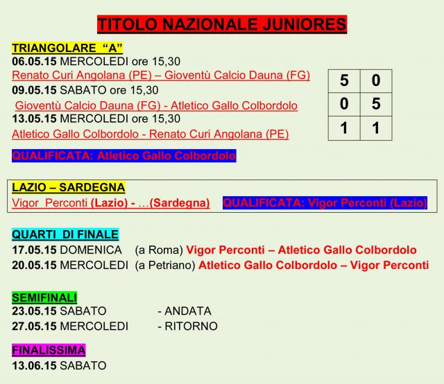 CU.226 JUNIORES Aggiornamento Risultati e Classifica ..