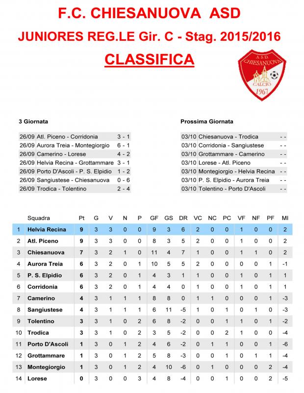 CU.226 JUNIORES Aggiornamento Risultati e Classifica ..