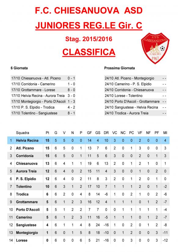 CU.226 JUNIORES Aggiornamento Risultati e Classifica ..