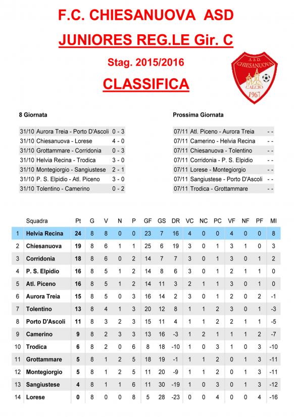 CU.226 JUNIORES Aggiornamento Risultati e Classifica ..
