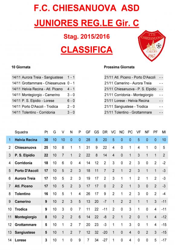 CU.226 JUNIORES Aggiornamento Risultati e Classifica ..