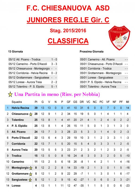 CU.226 JUNIORES Aggiornamento Risultati e Classifica ..