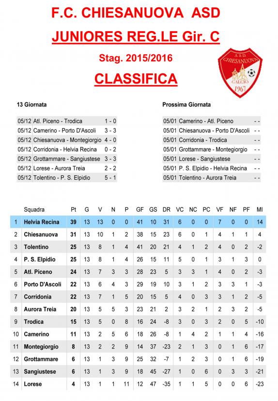 CU.226 JUNIORES Aggiornamento Risultati e Classifica ..