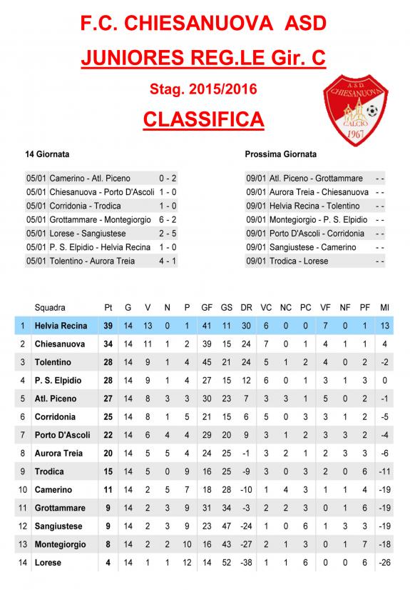 CU.226 JUNIORES Aggiornamento Risultati e Classifica ..