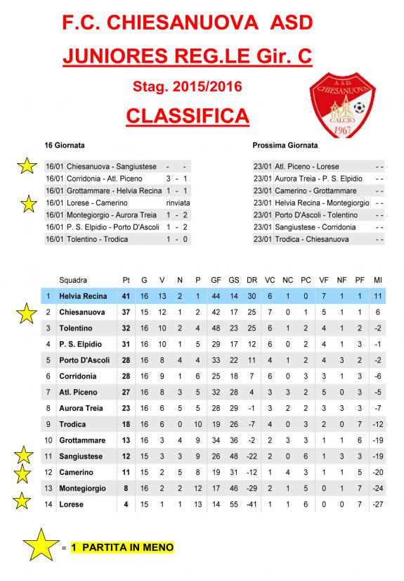 CU.226 JUNIORES Aggiornamento Risultati e Classifica ..