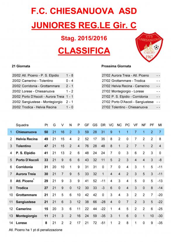 CU.226 JUNIORES Aggiornamento Risultati e Classifica ..