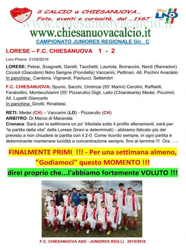 CU.142 JUNIORES: Lorese - Chiesanuova